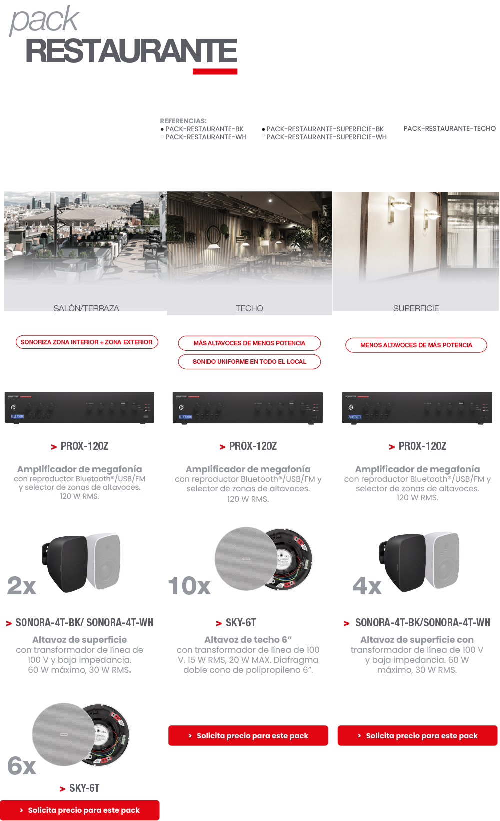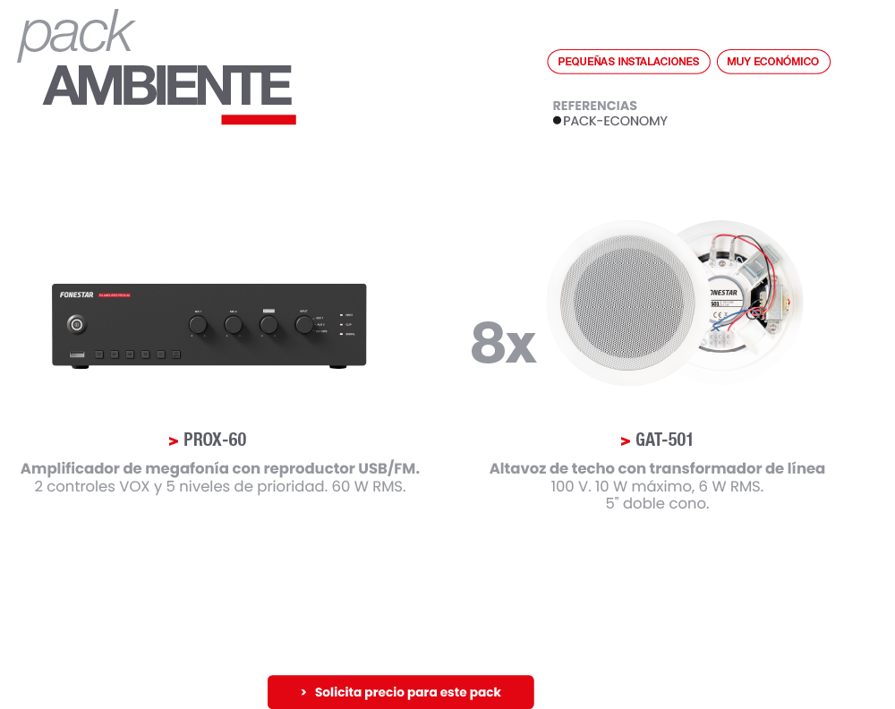 Soluciones cerradas para los espacios más habituales, con ahorro en cada pack y equipos compatibles entre sí.
